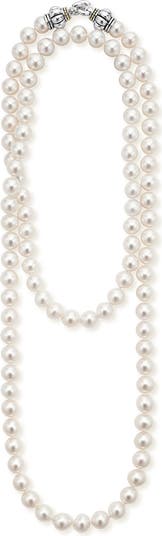 Gorgeous freshwater pearls line a timeless necklace crafted with a signature sterling silver and 18-karat-gold LAGOS clasp.