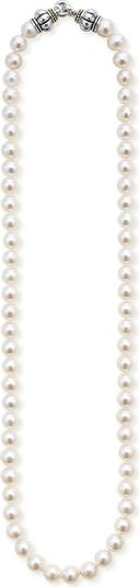 Gorgeous freshwater pearls line a timeless necklace crafted with a signature clasp of sterling silver and 18-karat gold.