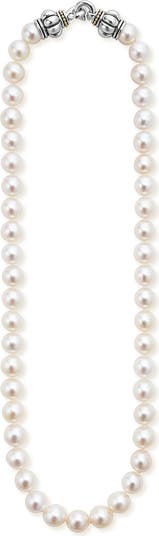 Gorgeous freshwater pearls line a timeless necklace crafted with a signature sterling silver and 18-karat-gold LAGOS clasp.