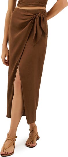 A lightweight linen blend keeps you feeling breezy in this faux-wrap cover-up skirt that's perfect for your next beach escape.