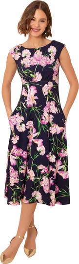 Elegant with a softly romantic feel, the Luna Midi Dress is designed for effortless occasion dressing. Made from a floral jacquard jersey, scattered with delicate blossoms, it brings depth, movement and understated drama to your look. The bodice is gently shaped through the waist before falling into a fluid midi-length skirt that moves beautifully with every step.
