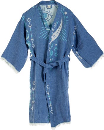 Meet your new favorite statement piece from Forever & Always Handmade Collection: our 100% handmade cotton Robe Cover-Up. Soft, breathable, and flowing effortlessly, it’s perfect for keeping comfy while looking effortlessly chic. With eye-catching designs, this Robe Cover-Up isn’t just gorgeous; it’s your vibe booster, bringing positive energy and a touch of protection wherever you go. Whether you’re lounging at home, turning heads at a party, or rocking it as a beach cover-up, it’s the piece that says, “I’m here to make an impression.” Every Robe Cover-Up is crafted with care, making yours truly one-of-a-kind. **Dimensions:** Length: 48" (124 CM) Width: 28.4" (72 CM) Arm Length: 16" (40 CM) Arm Width: 9.7" (25 CM)