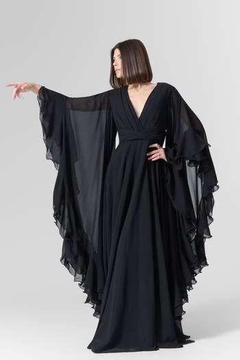 Silk Chiffon Maxi Ruffles Dress