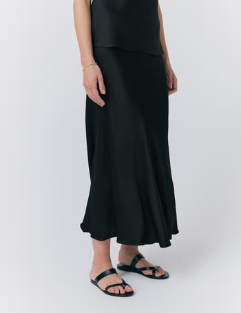 If you only have one skirt in your wardrobe, make it Luna. A true classic, this simple skirt is cut on the bias in a midi length and crafted in our signature satin, so it falls fluidly over the body to create a flattering, form-fitting silhouette. A subtly elasticated waistband ensures comfort. Dress up with a satin camisole and knitwear for this season.