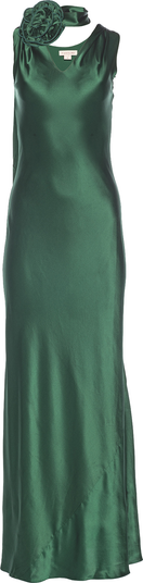 Discover elegance with our Luna Silky Dress, a stunning long V-neck gown crafted from luxurious silky fabric. Featuring a flattering bias cut, a chic neck tie, and an attached floral corsage, this timeless piece embodies sophistication and style. Perfect for formal occasions or upscale events, the Luna Silky Dress is designed for those who appreciate high-end fashion. Elevate your wardrobe with this classic yet modern gown.