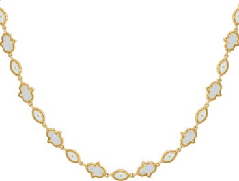 Lunar Alignment Rainbow Moonstone Hamsa & Evil Eye Gold Necklace