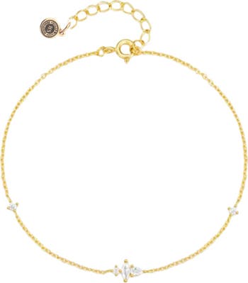 Elevate your jewelry collection with this stunning 18K gold plated sterling silver dainty cable chain bracelet. Adorned with AAAAA marquise, pear, and round cut cubic zirconia accents, this bracelet offers a delicate yet dazzling touch of elegance.
