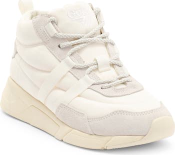 A wedge heel lifts this sporty sneaker outfitted with a durable nylon upper with a water-resistant finish.