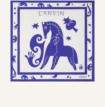 This scarf is inspired by the Horse, a symbol of the Lunar New Year, and gracefully unfolds into a delicate print, blending tradition and modernity. Supple and elegant, it adds a refined and cultural touch to any outfit, perfectly aligned with Lanvin's poetic and audacious spirit. It can be worn around the neck or over a bag handle.
