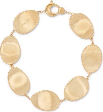 Petal-like stations are hand-engraved with Florentine techniques to add to the organic look of this 18-karat gold bracelet.