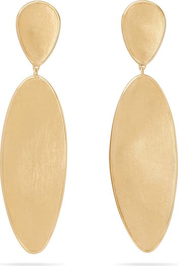Hand-etched texture enhances the bright 18-karat yellow gold of lovingly handcrafted drop earrings that mimic the gentle flutter of petals in the wind.