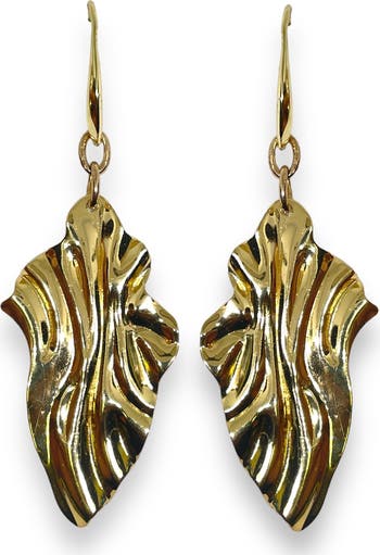 Elevate your style with exquisite elegance by incorporating the stunning Gold Heatwave Earrings into your jewelry collection. The unique abstract leaf design, enhanced by intricate wavy patterns, captures the essence of natural beauty and graceful movement. With a highly polished finish, each pair reflects light beautifully, making them versatile for both day and night occasions. Perfectly poised to complement any outfit, these earrings effortlessly blend sophistication and charm. Crafted for comfortable all-day wear, they sway gently with your movements, ensuring you always capture attention. Their striking length of approximately 2.5 inches makes them a statement piece that pairs perfectly with casual or formal attire. Bring a touch of refined artistry to your look with these timeless accessories.