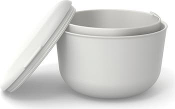 This 40 oz Store & Go Lunch set includes a bio-composite base, a leak-proof silicone lid, and two stackable silicone food compartments. The inserts can go from refrigerator or freezer to microwave and oven! Eat directly or transfer to the bowl and bon appétit! Dim: 6"Diameter x 4.5"H Capacity: 40 oz Also available in 25 oz