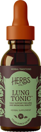Herbs etc. Lung Tonic is made with lung and bronchial supporting herbs, including Mullein, Horehound and Grindelia.