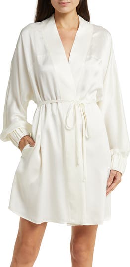 It’s a lovely robe, feels great on skin, remains silky after washing. Loving the color and design too. Been looking for a silk robe that is easy to care for and this purchase was perfect.