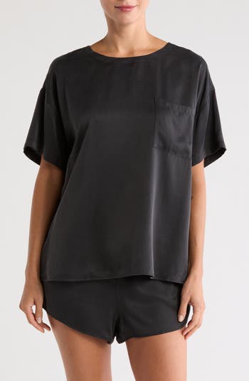These short silk pajamas are naturally hypoallergenic, breathable and ideal for those with sensitive skin; best part—they can go in the washing machine. The pocket T-shirt pairs perfectly with the matching shorts that feature grippers on the waistband for a stay-put fit.