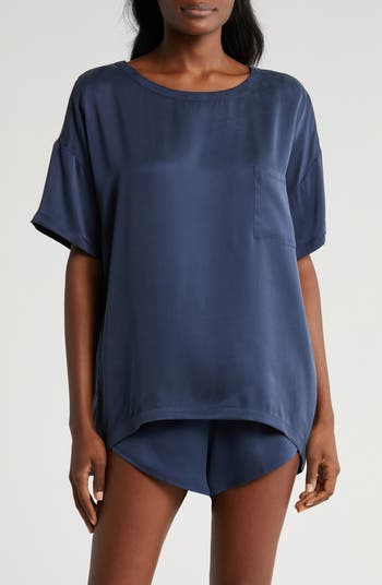 These short silk pajamas are naturally hypoallergenic, breathable and ideal for those with sensitive skin; best part—they can go in the washing machine. The slouchy, oversized T-shirt pairs perfectly with the angled-cut shorts that feature grippers on the waistband for a stay-put fit.