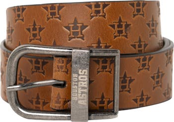 Enjoy a spirited accessory fit for cheering on your favorite team when you grab this Houston Astros Saul best from Lusso. Featuring debossed team graphics repeated around the belt and team name on the metal buckle, this adjustable belt has tons of Houston Astros spirit and won't interfere with your polished personal style.