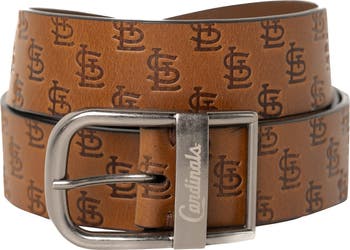 Enjoy a spirited accessory fit for cheering on your favorite team when you grab this St. Louis Cardinals Saul belt from Lusso. Featuring debossed team graphics repeated around the belt and team name on the metal buckle, this adjustable belt has tons of St. Louis Cardinals spirit and won't interfere with your polished personal style.