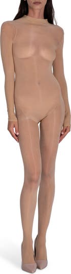 Sheer and shiny, this sleek body stocking hugs your curves, accentuating your silhouette and offering a second-skin fit.