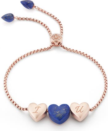 LuvMyJewelry Luv Me Love Heart Lapis Gemstone Rose Gold Plated Silver Bolo Adjustable Bracelet, Main, color, 14Kt Rose Gold Vermeil