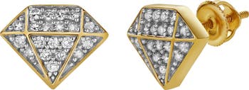 These gorgeous 0.33 carat diamond earrings feature a delicate cluster design meticulously set in 10k yellow gold frame shaped like a diamond and a screwback setting. Their elegant arrangement highlights the timeless brilliance of the diamonds.