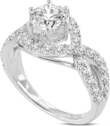 Ondine 14K White Gold Round Cut Lab Grown Diamond Spiral Halo Engagement Ring - 2 Ct