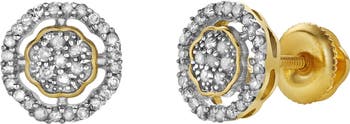 These gorgeous 0.26 carat diamond earrings feature a delicate cluster design meticulously set in 10k yellow gold with a screwback setting. Their elegant arrangement highlights the timeless brilliance of the diamonds.