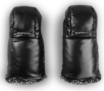 These cozy muffs made of sleek faux leather provide the ultimate protection for your hands while conveniently remaining attached to your stroller handlebar. The soft, cozy fleece lining provides substantial warmth, while the windproof and water-repellent material protects hands while strolling in cold weather.