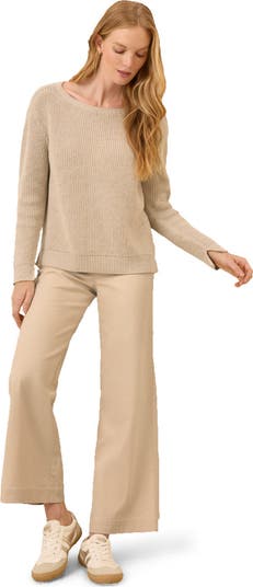 Beautiful sweater,lovely and flattering fit. Perfect length, soft cotton and nice detailing down the back. Flax is a flattering neutral yet beautiful color.