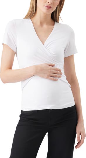 The Luxe Knit Embrace Nursing Tee perfectly blends comfort and style, making it an everyday essential. Made from a soft, stretch knit jersey, it feels super comfy while gently hugging your shape. The fitted V-neck and short sleeves give you a flattering, effortless look, while the crossover front makes nursing simple and convenient. Pair it with your favourite pants for a go-anywhere outfit that’s all about comfort without sacrificing style.