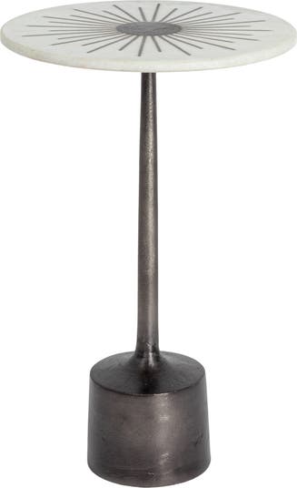 Add a touch of glamour and grace to any home with this Luxe Aluminum and Marble Martini Table. This stunning table features a black aluminum base and a smooth marble top, creating a luxurious and sophisticated look. This table is perfect for displaying any drinks, books, or decor items, as it has a 41 pounds weight capacity and a compact size of 12 inches in diameter and 19.75 inches in height. This table is made of aluminum and marble, harmoniously blending durability and beauty. Impress any guests with this exquisite martini table that showcases the allure of aluminum and the elegance of marble.