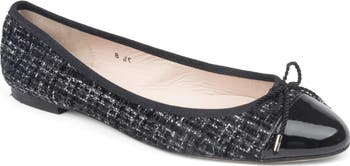 A patent-leather cap toe provides an impeccable finishing touch for this classic ballet flat featuring an adjustable drawcord to perfect the fit.