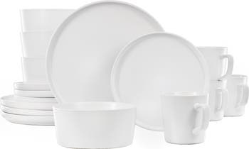 The Elama Luxmatte White 16 Piece Dinnerware Set brings style to the table for family and guest to adore. The minimalist design perfectly accents any meal, be it a basic breakfast or a lavish luncheon. Made from a stoneware construction, the set features top quality presentation and durability. Dishwasher safe for easy cleaning and microwave safe for fast heating. This place setting is suitable for any situation be it for casual hangouts or special celebrations.