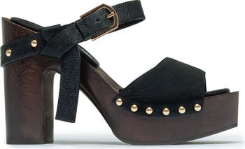 Height & harmony. Sculpted from dark walnut wood, this platform heel balances standout height with wearable comfort. A functional belt-strap, buckle and understated clog studs deliver polished hardware accents. Crafted from premium grain leather, putting the LUX in Luxor. The Bernardo1946 capsule collection takes inspiration from our archives, reflecting our founder Bernard Rudofsky’s dedication to timeless design, premium materials, artisan handcrafted quality, and uncompromising comfort.