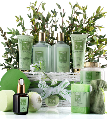 - Includes shower gel, bubble bath, body scrub, shampoo, tea tree oil, bath bomb, handmade soap, bath salts, shower steamer tablet, eye mask, tea tree potpourri