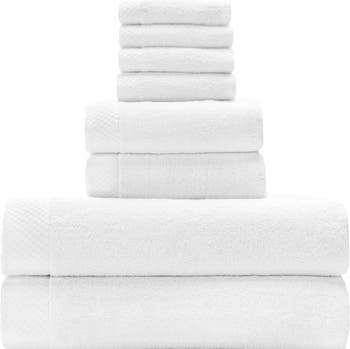 Upgrade to spa-quality softness with hypoallergenic Viscose towels. Odor, mildew, and bacteria resistant. UV protective, ultra-absorbent, 600 GSM. Set of 8.