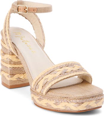 Blur the line between art and fashion with this resort-ready sandal boasting an ornate basket-weave design made of sunshine-ready raffia.