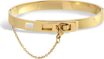 The Lylah Bangle is the bangle you need in your bracelet stack! The bangle combines a sleek design with a chain link clasp adding the perfect bit of edge to your wrist.