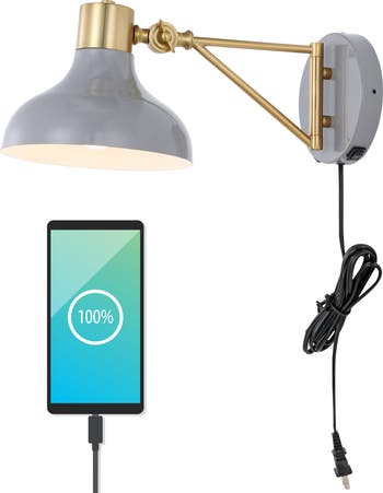 Lynn Swing Arm 1-Light Modern Midcentury Iron USB Charging Port LED Sconce