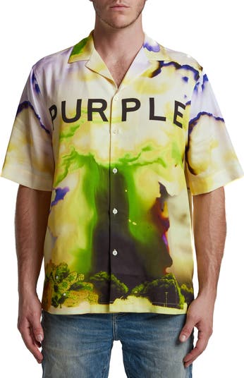 A bold logo swims in the swirl of color on this camp shirt cut from lightweight lyocell that gives this style its fine drape and exceptional comfort.
