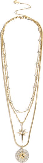 Sparkling pendants and gleaming goldtone chains make this necklace the perfect way to create a glamorous layered look.