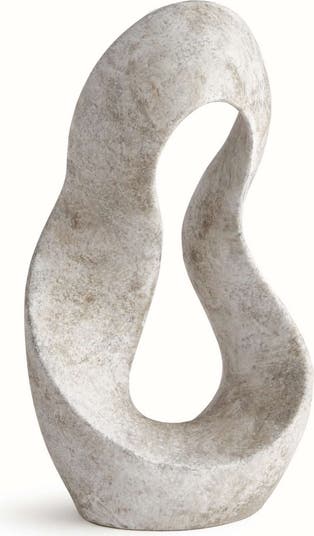 This well-scaled clay sculpture is an abstract, curvy composition finished in a matte neutral glaze. A simple, yet sophisticated work of art for ottoman, desktop or bookshelf.