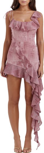 Floaty ruffles romance this sculpting powermesh mini designed with slender tie straps and a lovely side drape.