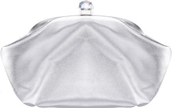Subtle gathers and a faceted clasp bring subtle elegance to a metallic faux-leather clutch featuring an optional chain strap for hands-free wear.