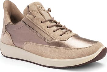 A subtle wedge sole built with HighSoft cushioning bring elevated comfort to this leather sneaker designed with suede and metallic panels for a modern, sporty look.