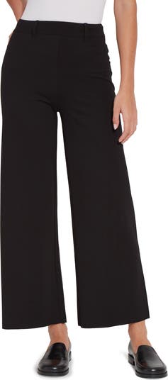 A concealed waistband tops these stretchy pants punctuated with ankle-length wide legs.