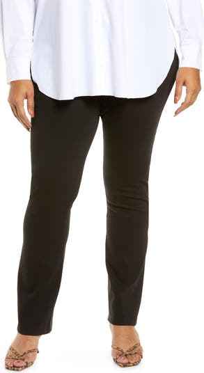 A straight-leg fit refreshes the look of sleek denim jeggings fashioned with just the right amount of stretch.