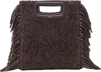 Maje presents an iconic piece from its collection: the M bag. Recognisable by its signature features: rectangular sheathed leather handles, fringe detailing on the sides, and topstitch details. The M bag is enhanced by must-have colours and fabrics.Practical and versatile with its magnetic fastening and adjustable strap, the M bag can be carried by hand, on the shoulder or crossbody to suit any style, elegant and ultra feminine. This bouclé-effect version in dark brown is the perfect size to carry everything you need.