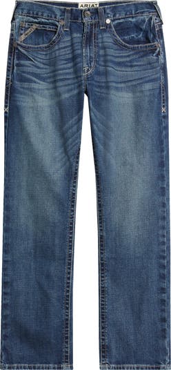 A faded wash enhances the ruggedly cool vibe of mid-rise jeans cut in a bootcut silhouette that's comfortably relaxed through the waist, hips and thighs.